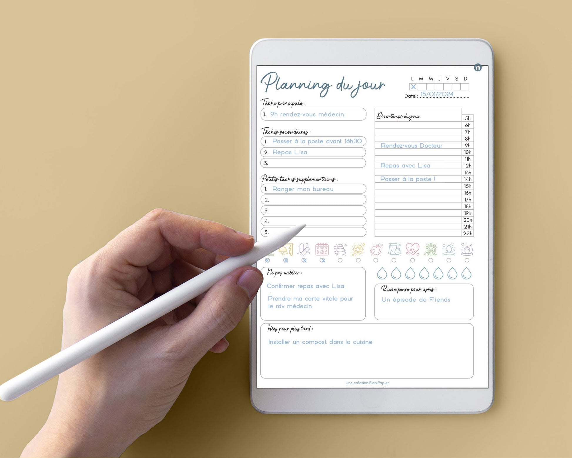 Il est disponible en format PDF A4 et A5 vous pouvez donc l'imprimer ou l'utiliser sur une application d'annotation PDF (goodnotes, xodo, notability, noteshelf)