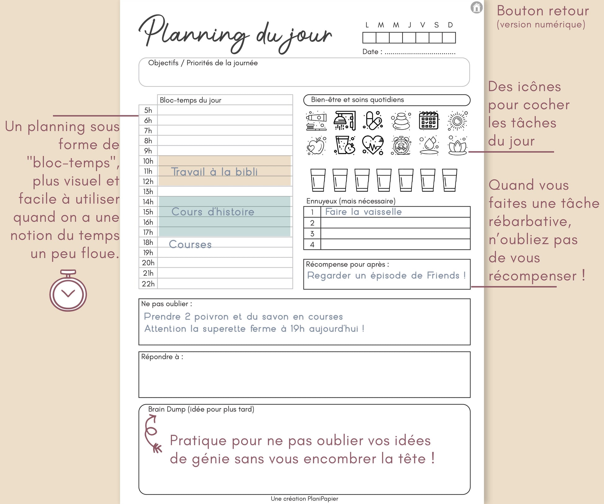 Il est disponible en format PDF A4 et A5, vous pouvez donc l'imprimer ou l'utiliser sur une application d'annotation PDF (goodnotes, xodo, notability, noteshelf)