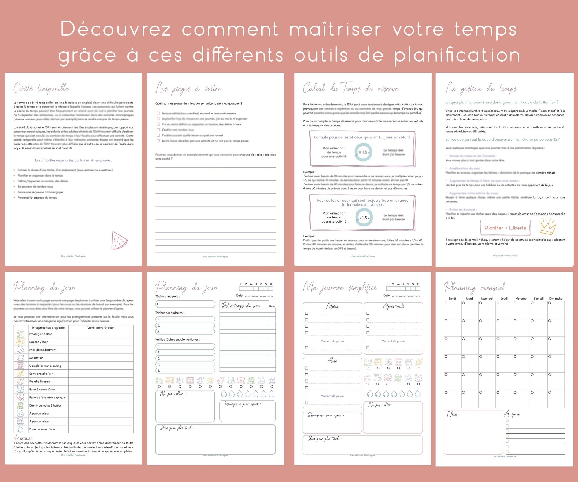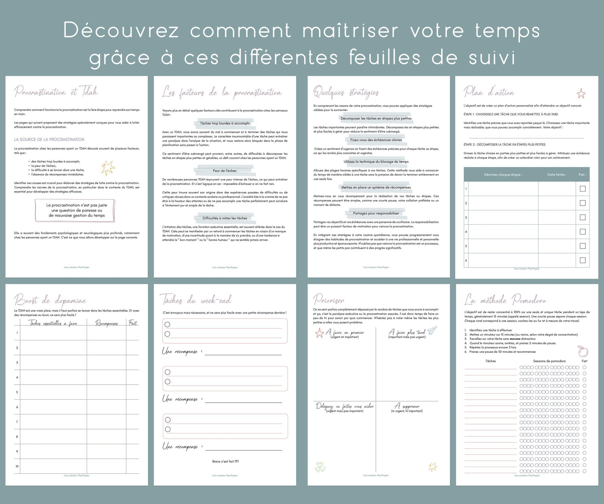 Si vous avez un Trouble du Déficit de l'Attention avec ou sans Hyperactivité, ou une autre forme de neuroatypie, ces feuilles d'outils et de conseils sont faites pour vous. Lancez-vous enfin dans cette tâche que vous remettez sans cesse au lendemain, apprenez à gérer votre temps et votre motivation en prenant en compte les spécificités de votre trouble de l'attention.
